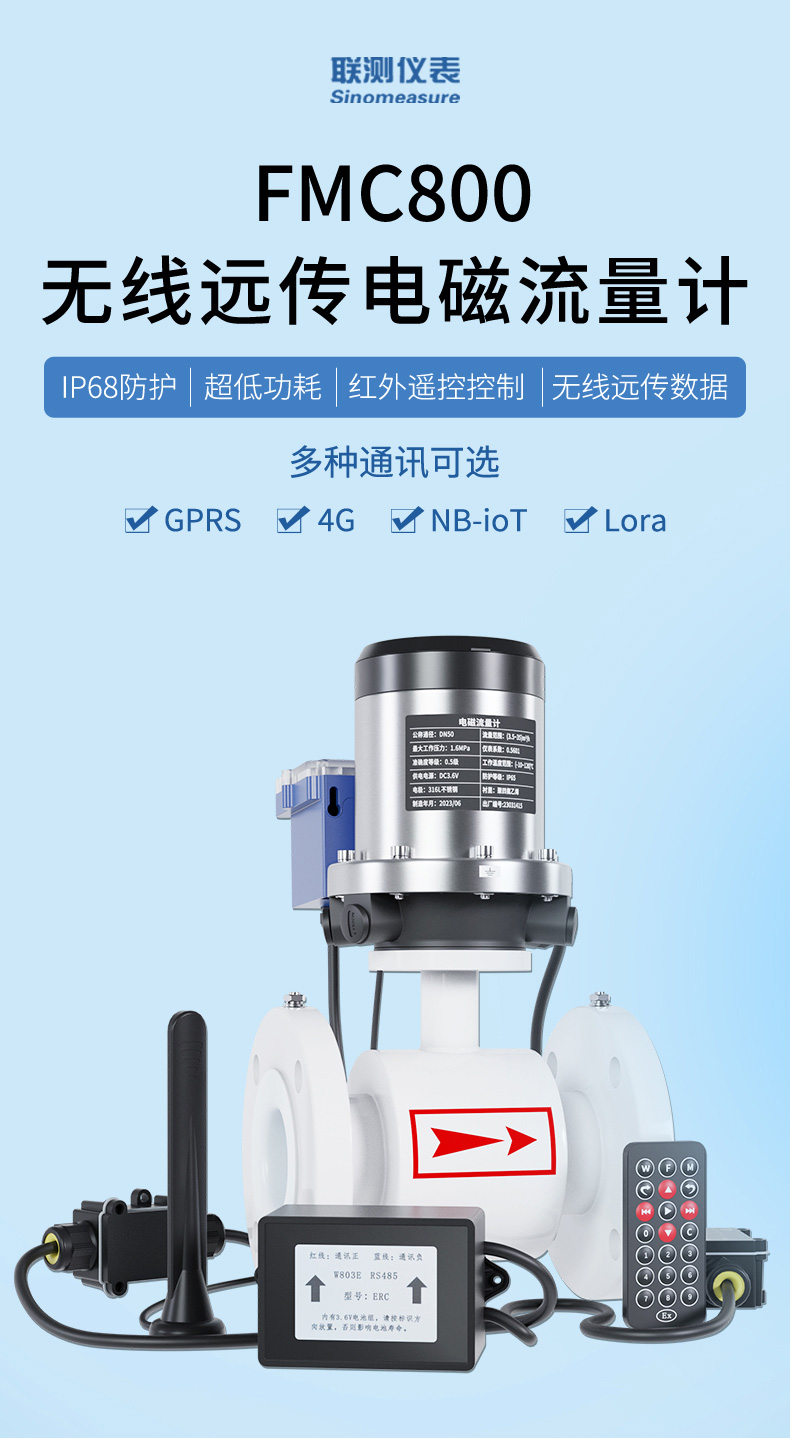 產(chǎn)品名稱:聯(lián)測_FMC800無線遠傳電磁流量計_自來水供水、污水處理_