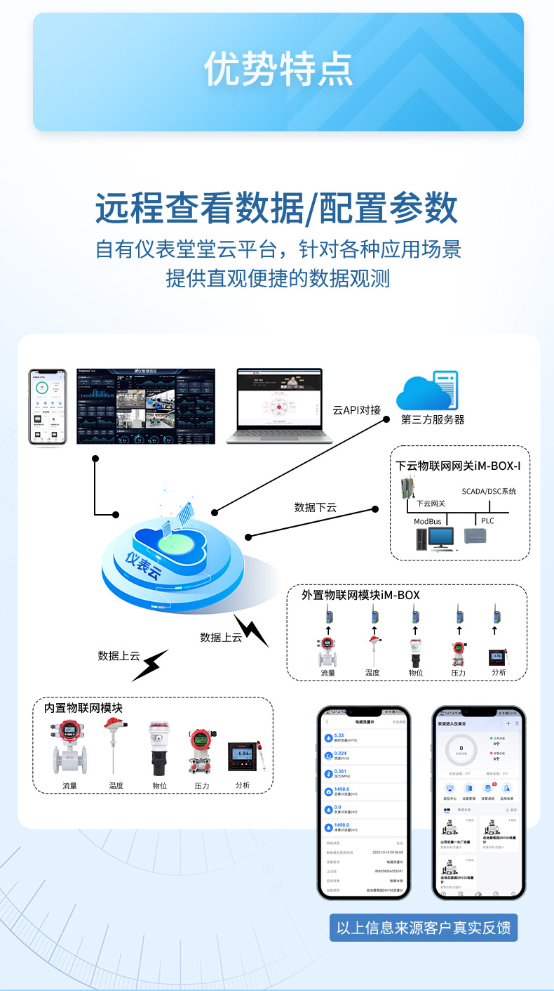 產(chǎn)品描述:無線電磁流量計由電磁流量計和 4G 無線遠傳模塊共同組成,用于測量封閉管道內(nèi)導電液體的瞬時流量和累積流量。測量數(shù)據(jù)通過 4G 信號遠傳至網(wǎng)絡接收平臺,用戶可以通過瀏覽器、微信公眾號等方式靈活方便地查看數(shù)據(jù)、遠程配置參數(shù)等功能,實現(xiàn)智能物聯(lián)。廣泛應用于自來水、化工、煤炭、環(huán)保、輕紡、冶金、造紙等行業(yè)。