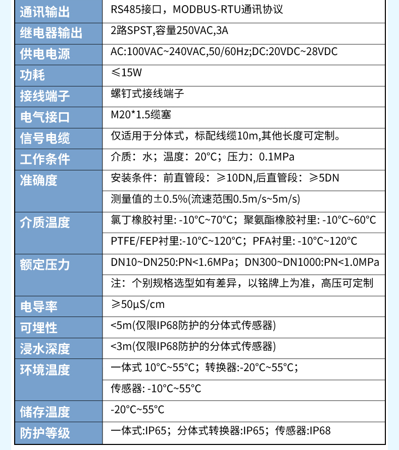 A100D電磁流量計(jì):公稱通徑 DN10~DN1000