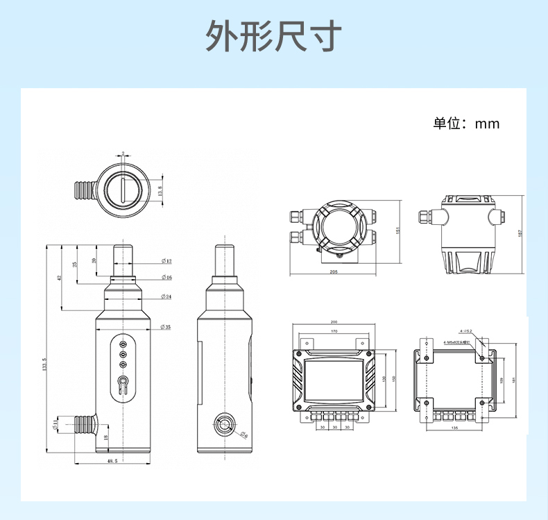 產(chǎn)品尺寸 133.5mm*48.5mm*35mm(不含線)