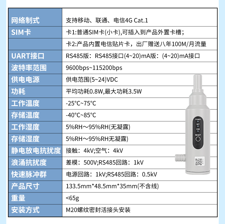 網(wǎng)絡(luò) 支持移動(dòng)、聯(lián)通、電信 4G Cat.1