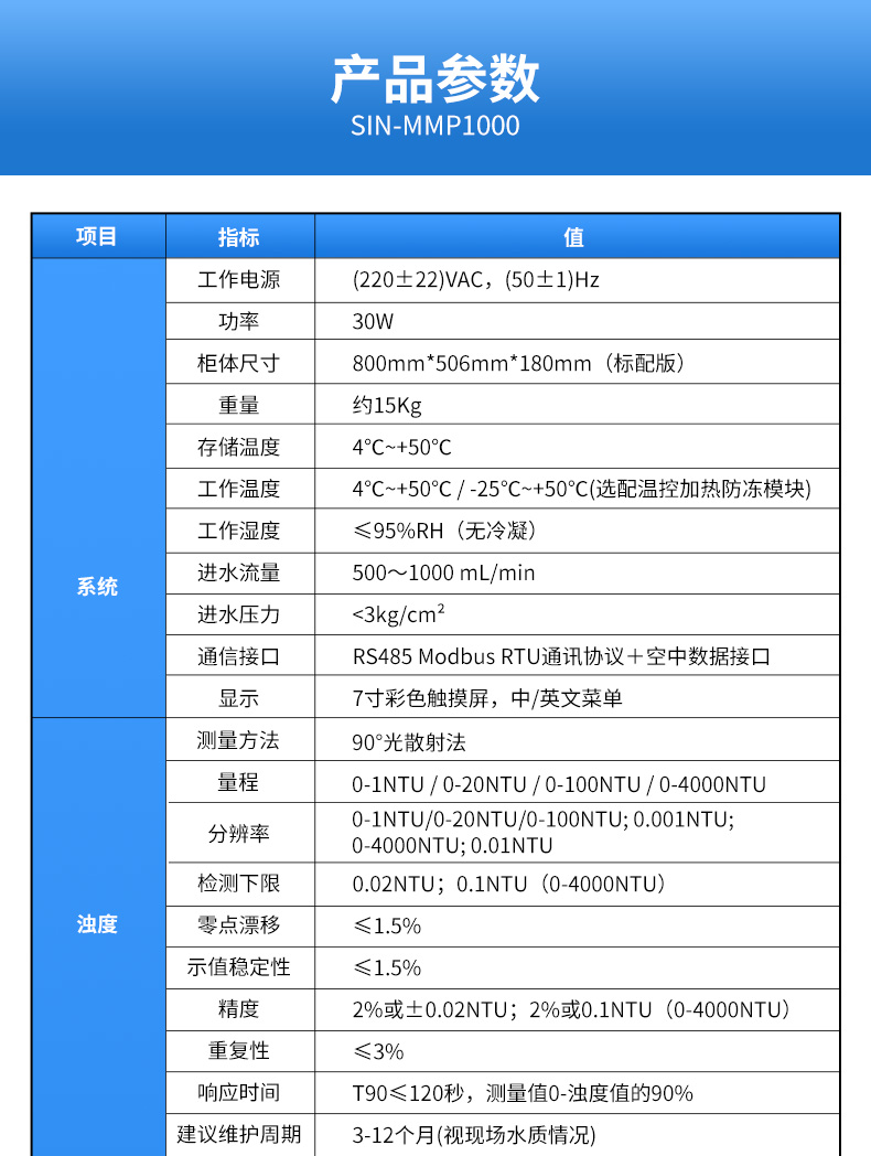 產(chǎn)品名稱:聯(lián)測_SIN-MPP1000水質(zhì)在線分析儀_濁度、余氯/二氧化氯、pH、溫度、電導率/TDS、溶解氧、ORP等