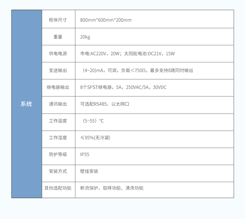 產(chǎn)品描述:一套系統(tǒng)可測量多種水質(zhì)參數(shù),測量參數(shù)可選,精度高,重復(fù)性好,傳感器可任意組合。安裝簡單易行,維護方便,無須添加試劑。沒有試劑消耗不會產(chǎn)生二次污染、無廢液,在一定范圍內(nèi)對電極進行溫度補償,多種輸出方式可選(模擬量(4~20)mA,RS485,以太網(wǎng)口)
