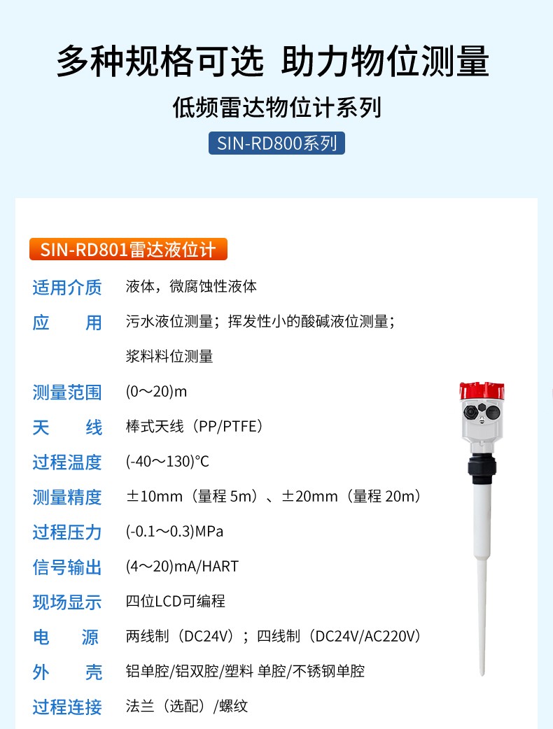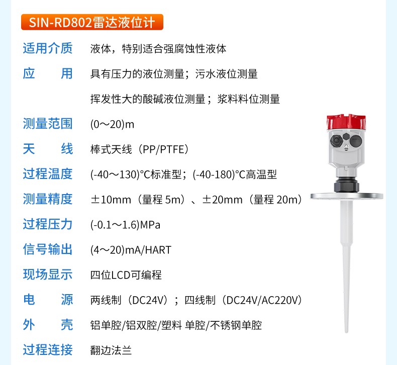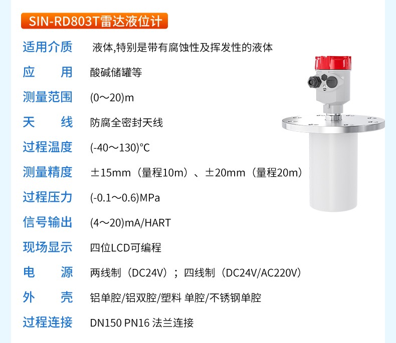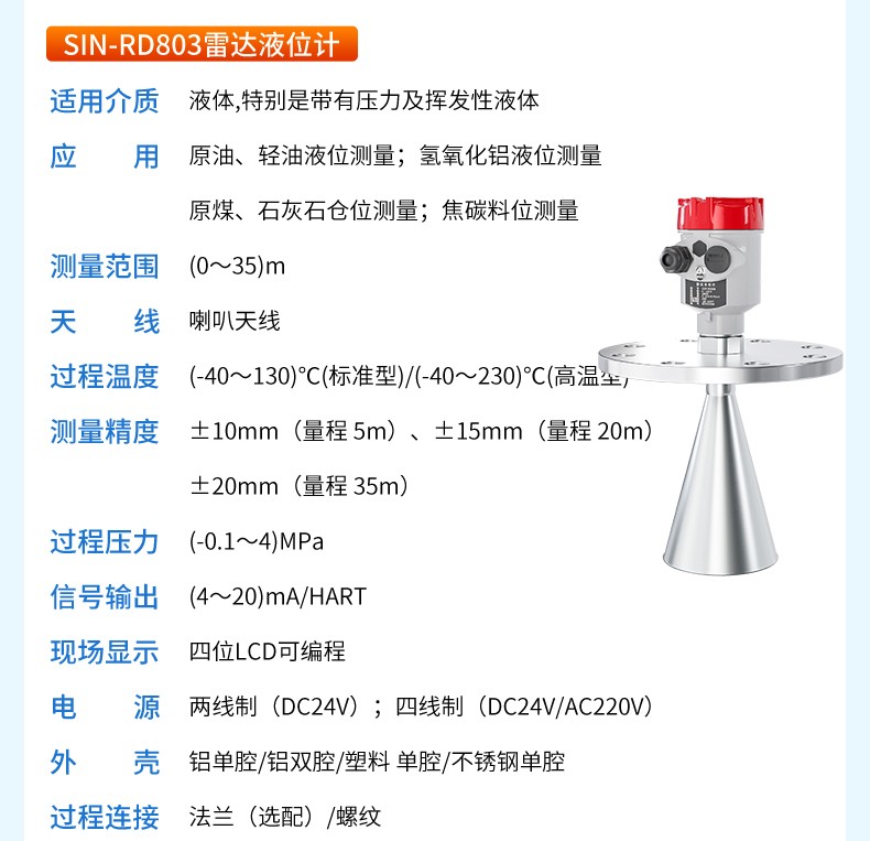 產(chǎn)品名稱(chēng):聯(lián)測(cè)_SIN-RD803雷達(dá)液位計(jì)_適用于揮發(fā)性液體