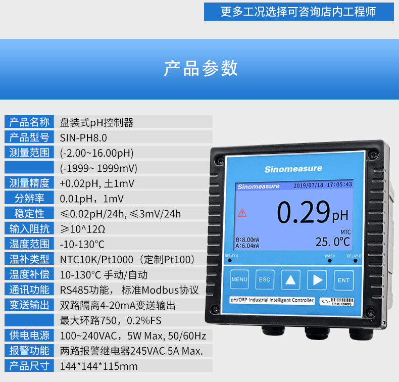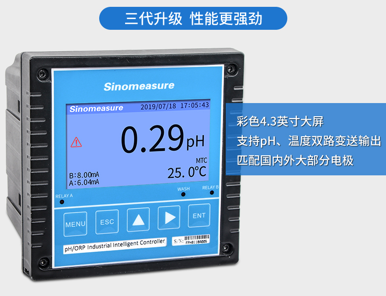 產品名稱:聯(lián)測_SIN-pH/ORP8.0大屏4.3英寸在線pH計_帶記錄_帶清洗