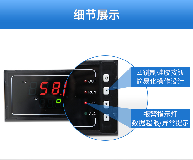 產(chǎn)品描述:SIN-2100單回路數(shù)字顯示控制儀采用全自動(dòng)貼片封裝工藝,具有很強(qiáng)的抗干擾能力。設(shè)計(jì)了雙屏 LED 數(shù)碼顯示,顯示內(nèi)容更豐富??膳c各類傳感器、變送器配合使用,實(shí)現(xiàn)對(duì)溫度、壓力、液位、速度、力等物理量的測(cè)量顯示,輸出功能包括:報(bào)警控制、模擬變送、485/232 通訊等等,比傳統(tǒng)的數(shù)顯儀表還新增加了還原出廠默認(rèn)參數(shù),操作更簡便,適用更廣泛。