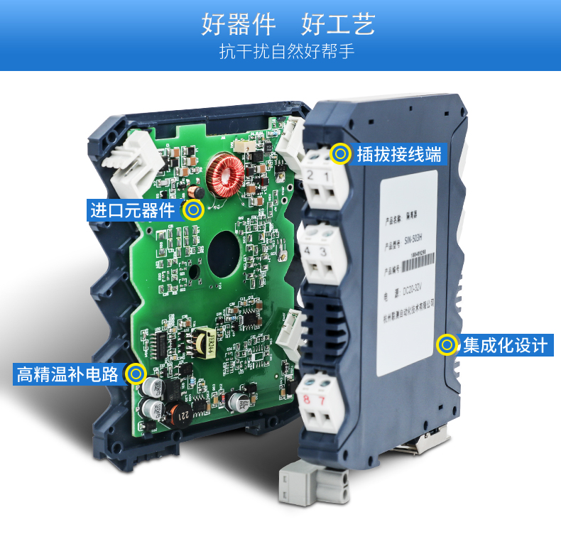 產(chǎn)品描述:將PT100等熱電阻跟熱電偶信號轉(zhuǎn)換成各種電流、電壓等標(biāo)準(zhǔn)模擬量信號,可以與PC機(jī)、PLC、DCS等實現(xiàn)工控監(jiān)測連接。抗干擾能力強(qiáng),遠(yuǎn)傳不受其他設(shè)備影響。輸入、輸出選擇范圍寬,準(zhǔn)確度高。電源可選擇,導(dǎo)軌安裝便于檢測與安裝。廣泛應(yīng)用于各種對溫度集中測量的監(jiān)控系統(tǒng)中。