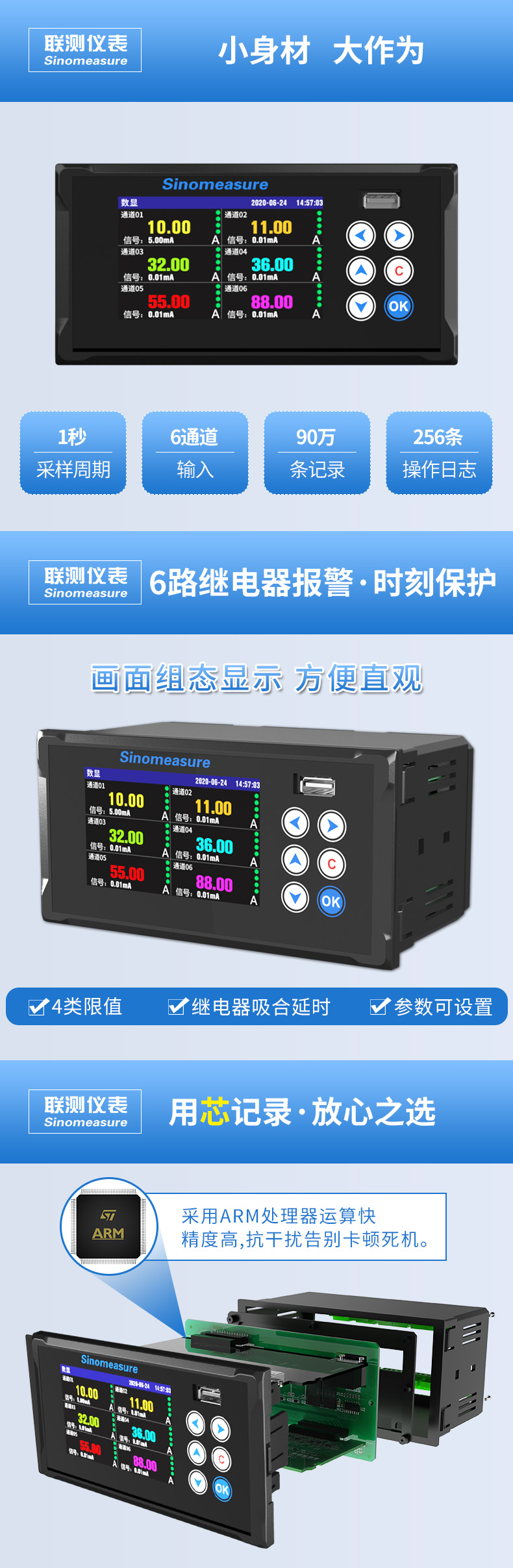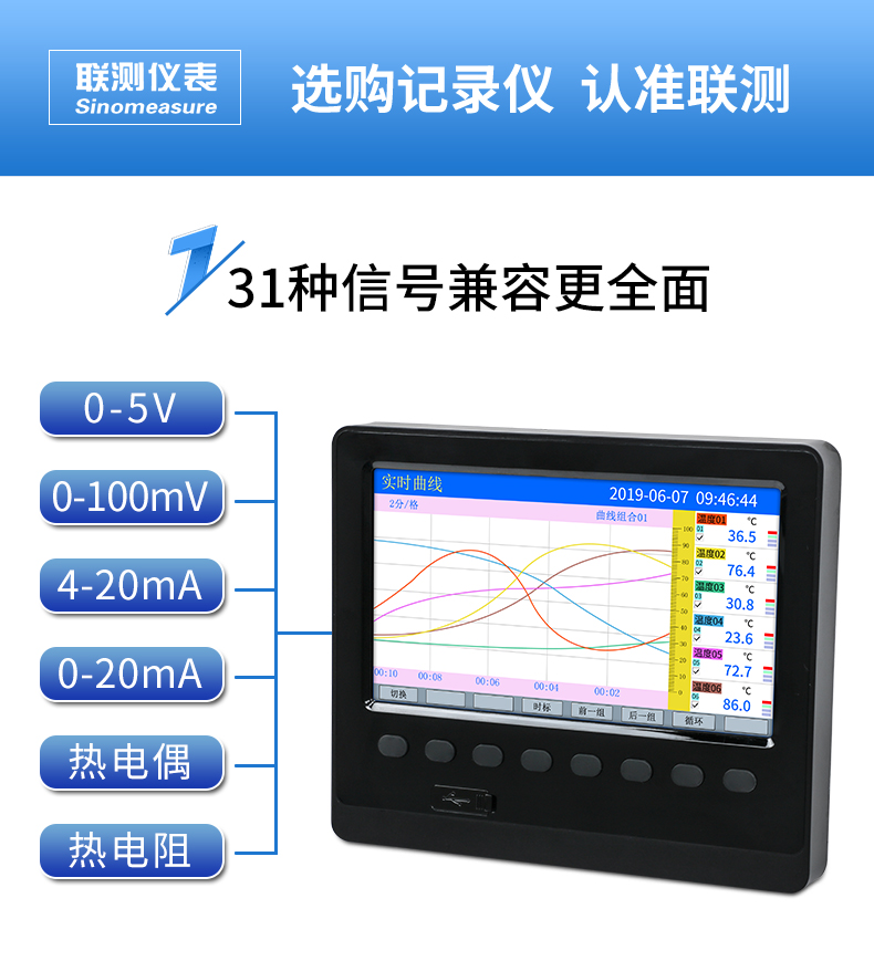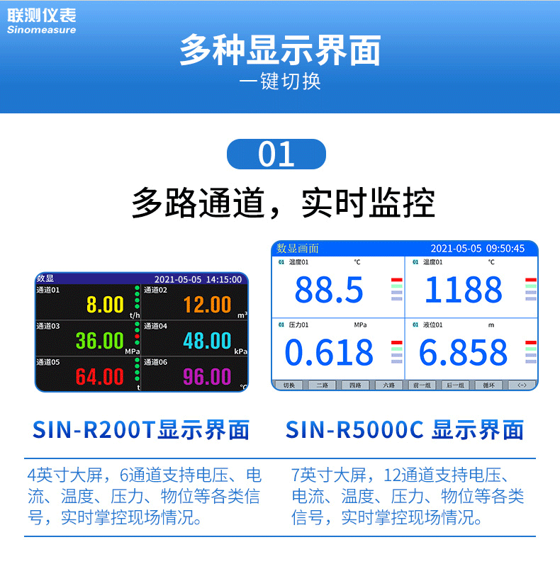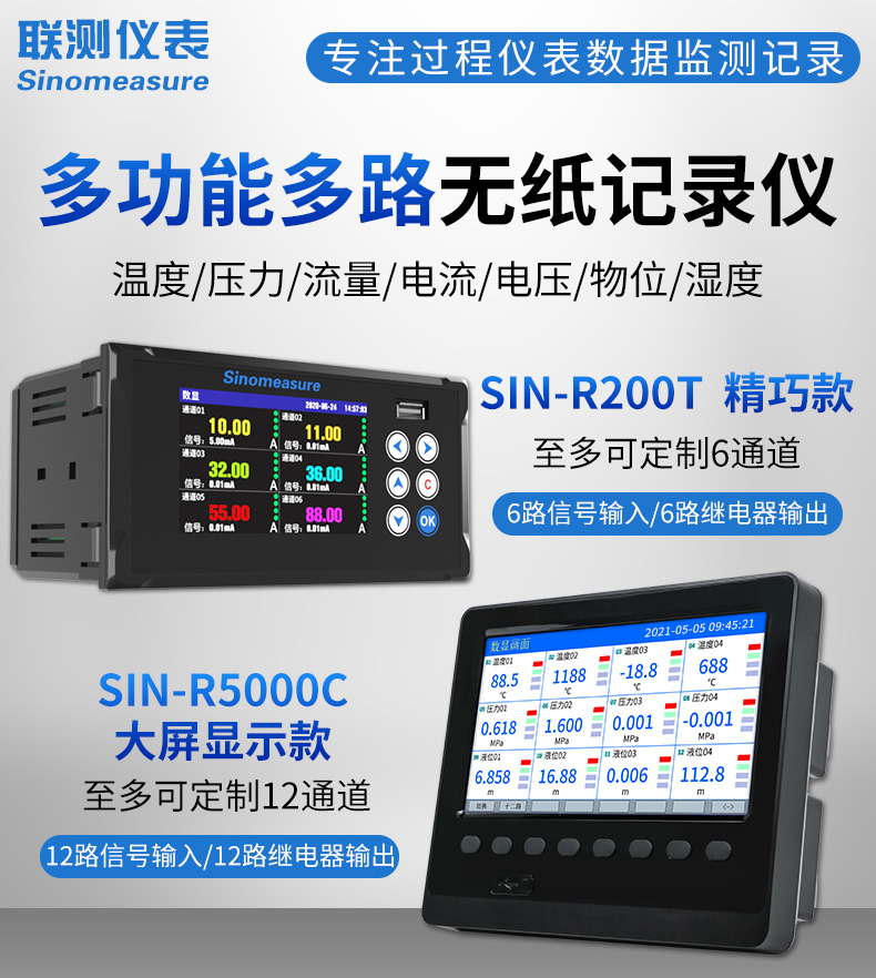 產(chǎn)品名稱:聯(lián)測(cè)_SIN-R200T_1~6路可選_記錄儀溫度/壓力/電流/電壓/頻率等多種參數(shù)