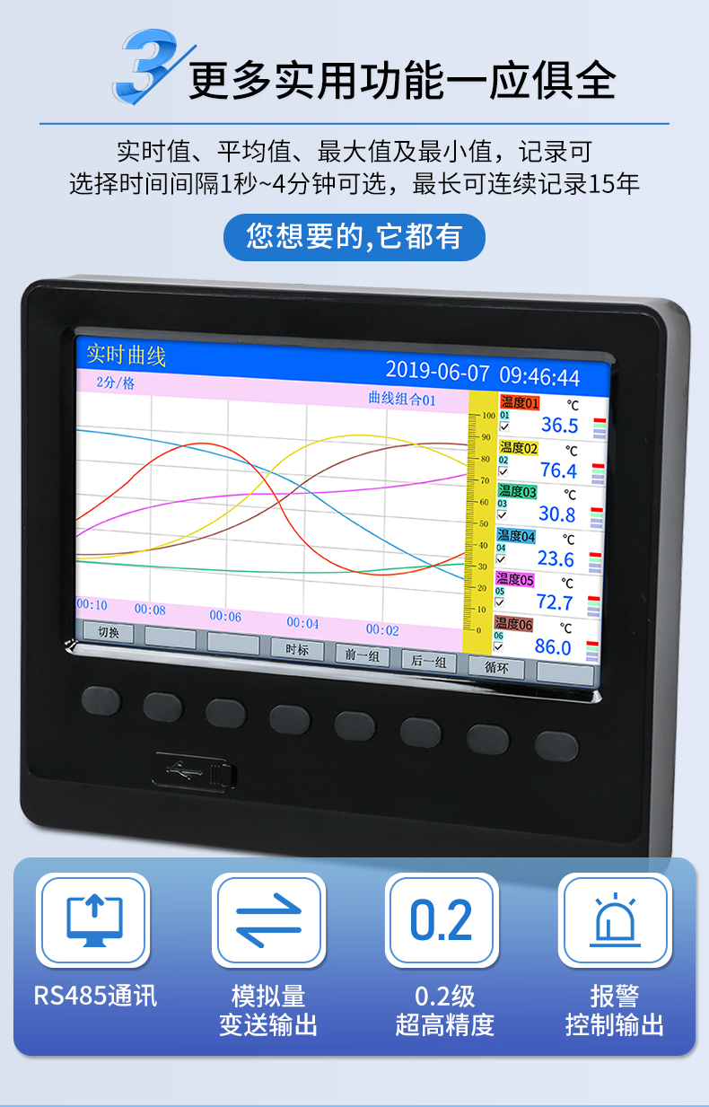 產(chǎn)品描述:工業(yè)無紙記錄儀,6 通道萬能輸入,160*80 面板尺寸??奢斎腚娏?、電壓、熱電偶、熱電阻和頻率等工業(yè)信號(hào),以數(shù)值、棒和曲線形式實(shí)時(shí)顯示數(shù)據(jù),定時(shí)將數(shù)據(jù)存儲(chǔ)于儀表內(nèi)部電子存儲(chǔ)器,可通過 USB 設(shè)備快速轉(zhuǎn)存歷史數(shù)據(jù)。