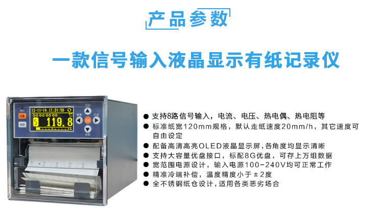 產(chǎn)品描述:混合式打印記錄儀是專(zhuān)業(yè)針對(duì)工業(yè)現(xiàn)場(chǎng)設(shè)計(jì)的多功能智能記錄儀。 提供多路高精度模擬信號(hào)輸入通道,可配置多路報(bào)警,提供傳感器配電; 采用高精度熱敏打印機(jī),實(shí)現(xiàn)數(shù)據(jù)、曲線和混合打印;配備有高亮高清 晰 OLED 液晶屏,提供實(shí)時(shí)數(shù)據(jù)顯示。