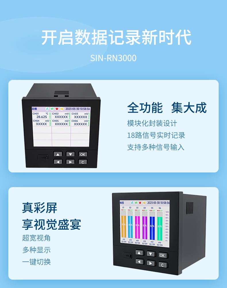 產品名稱:聯(lián)測_SIN-RN3000-1_18 路萬能模擬輸入 3.5 英寸彩色液晶屏無紙記錄儀_溫度_壓力_多種參數(shù)