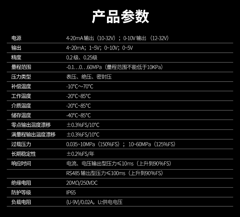 產(chǎn)品描述:擴(kuò)散硅壓力變送器選用進(jìn)口高精度、高穩(wěn)定性壓力 敏感芯片。敏感芯片采用先進(jìn)的微機(jī)械刻蝕加工工藝, 通過(guò)在硅片上擴(kuò)散四個(gè)高精度電阻,從而形成惠斯通電 橋。由于壓阻效應(yīng),四個(gè)橋臂電阻的阻值發(fā)生變化,電 橋失衡,敏感元件輸出一個(gè)對(duì)應(yīng)壓力變化的電信號(hào)。輸 出的電信號(hào)通過(guò) 24 位 AD 數(shù)字芯片的放大和非線性矯正 的補(bǔ)償,產(chǎn)生與輸入壓力成線性對(duì)應(yīng)關(guān)系的電壓、電流 信號(hào)。CN6