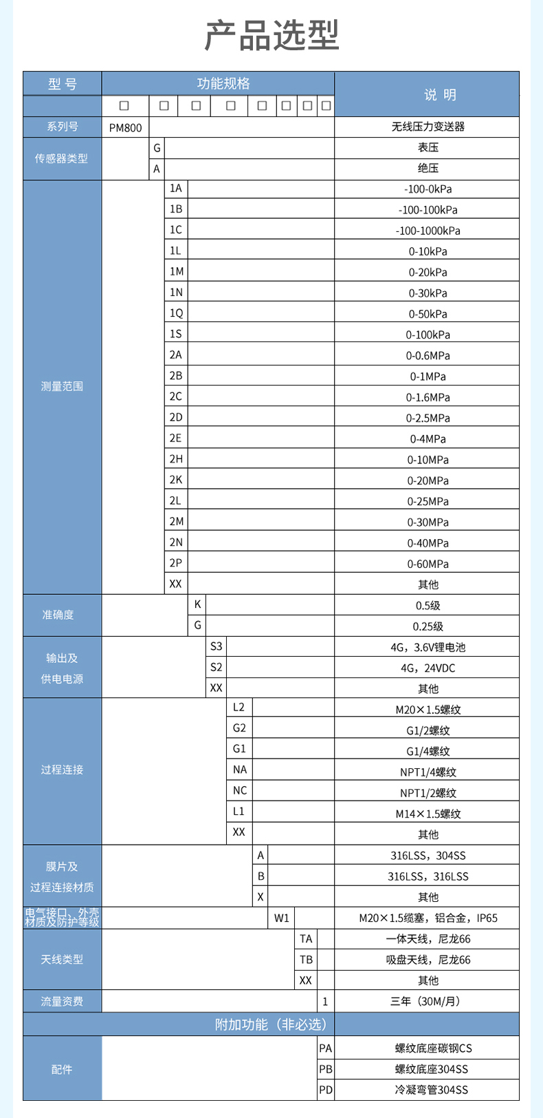 產(chǎn)品名稱: PM800無線壓力傳感器 4G通訊 電池供電 耐壓100MPA 0.5%精度
