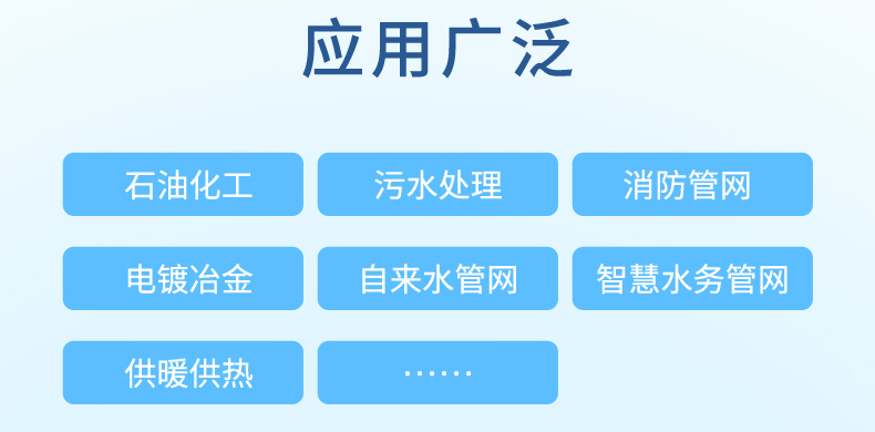 本產(chǎn)品適合油田、水利、消防管網(wǎng)、自來水管網(wǎng)、城市供熱管網(wǎng)等智慧城市應(yīng)用場(chǎng)景。