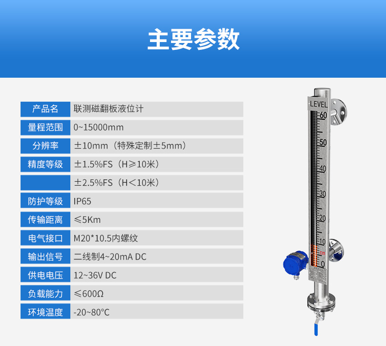 產品名稱:SIN-UZS磁翻板液位計_磁浮子液位計_水箱、罐體液位