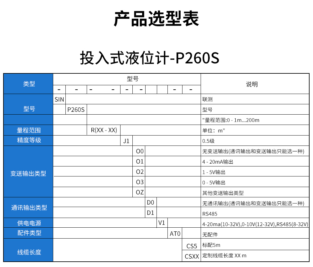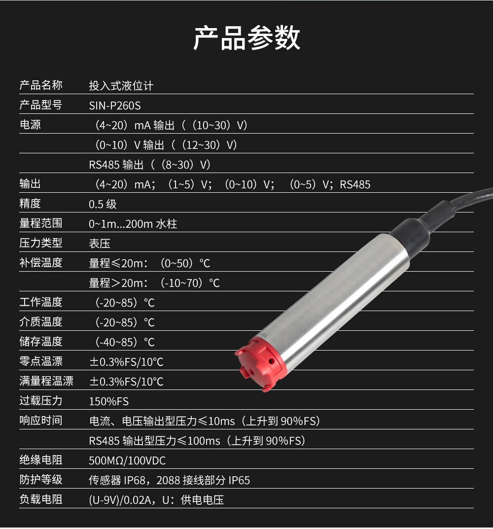 產(chǎn)品名稱:聯(lián)測_SIN-P260S新款投入式液位計/水位計_水箱、水池液位控制器