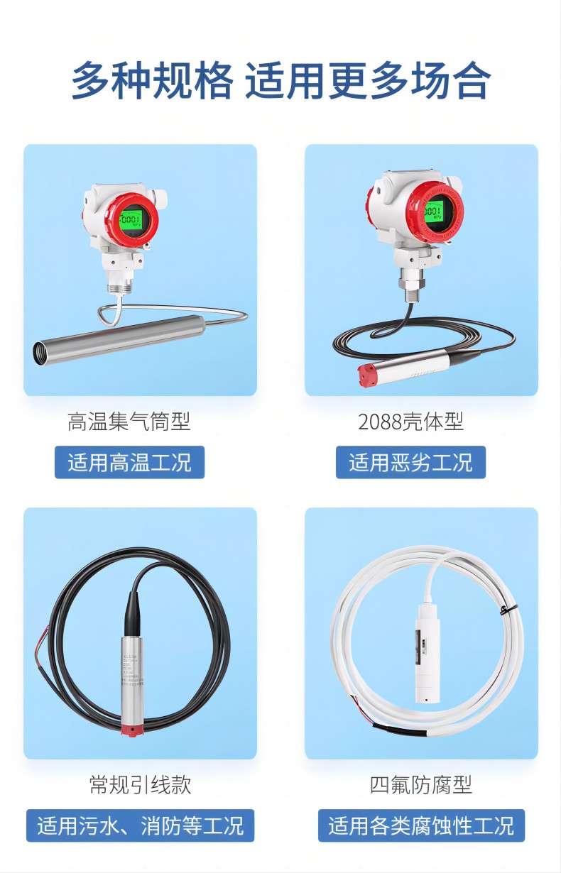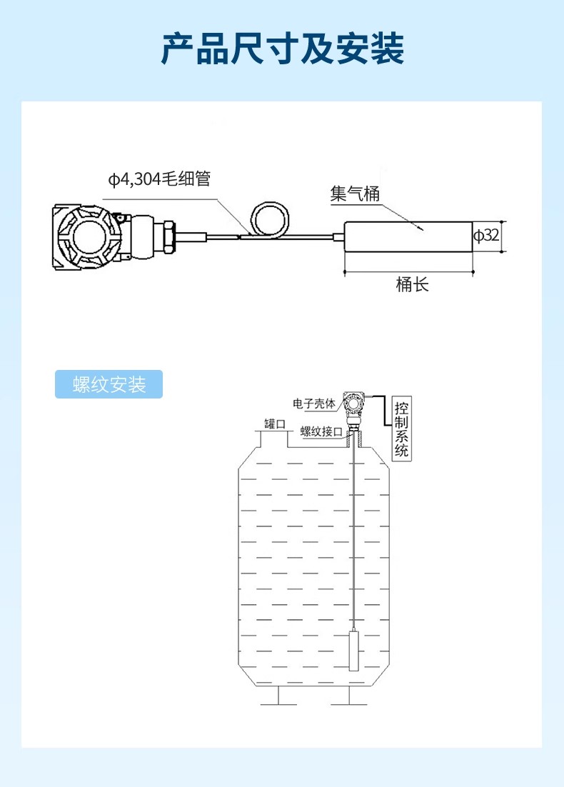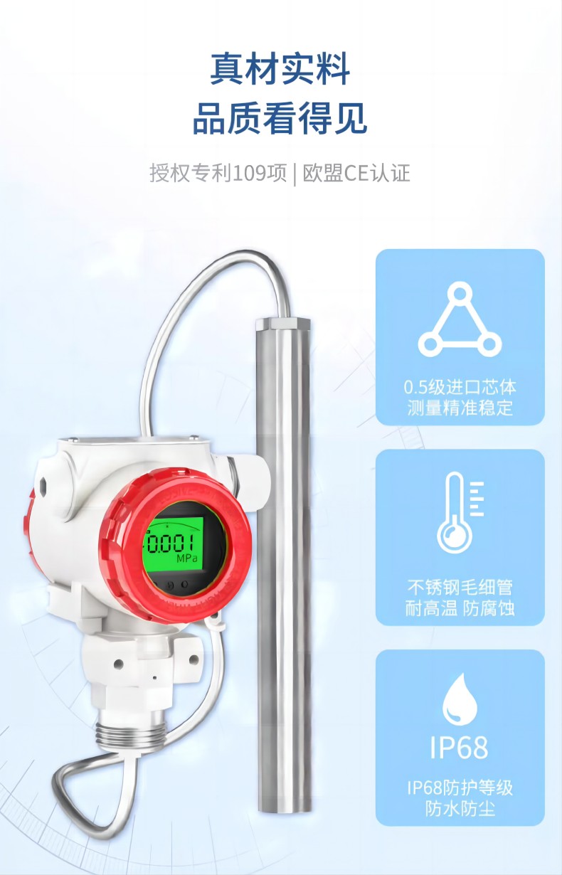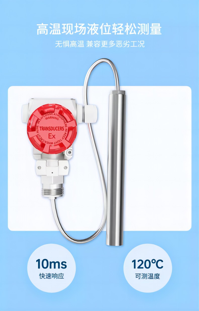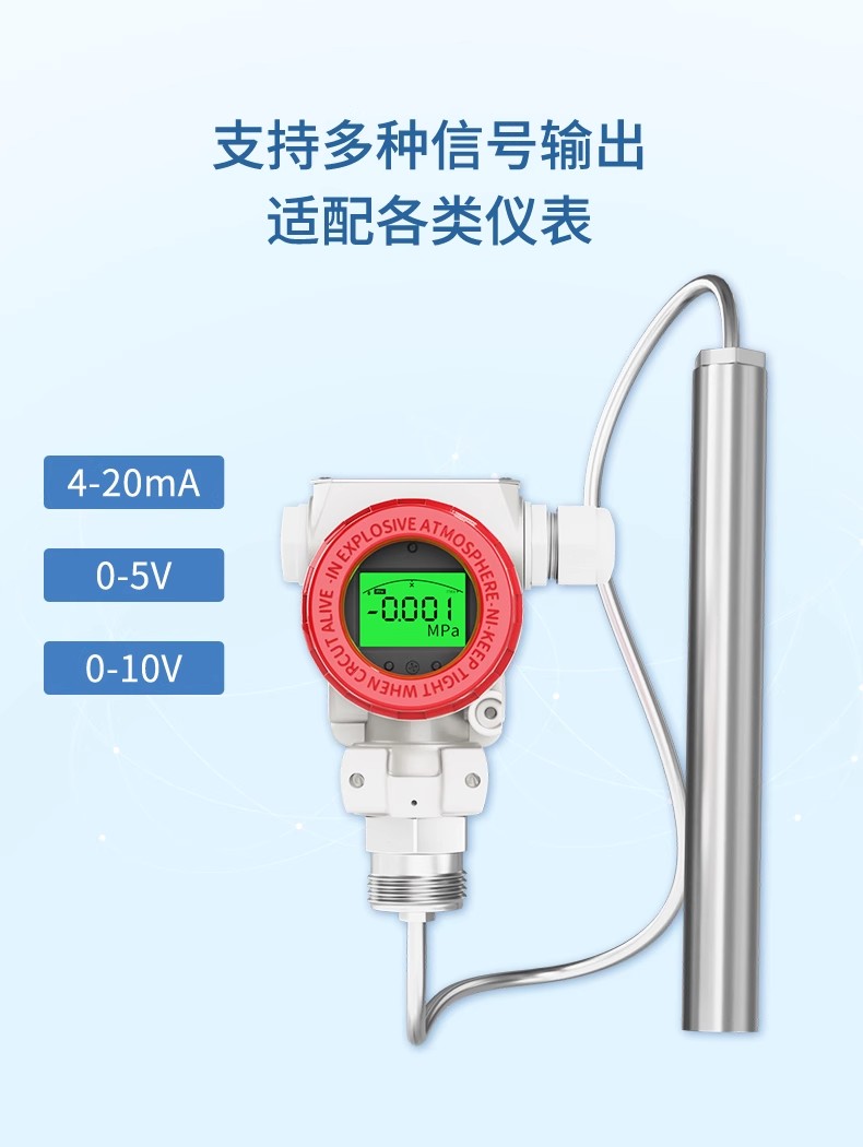 產(chǎn)品描述:集氣桶式液位變送器(下稱(chēng)變送器)用于測(cè)量較高溫度液體介質(zhì)的液位,原理是被測(cè)液體介質(zhì)壓縮集氣桶內(nèi)的空氣,空氣壓力通過(guò)毛細(xì)管傳遞給敏感元件,敏感元件本身不與被測(cè)介質(zhì)直接接觸,因此變送器可以應(yīng)用在較高溫度的介質(zhì)環(huán)境中,同時(shí),內(nèi)置微型信號(hào)放大處理電路,可以直接與計(jì)算機(jī)接口卡、控制儀表、智能儀表或 PLC 等連接,進(jìn)行遠(yuǎn)程傳輸。變送器廣泛應(yīng)用于環(huán)保、水利、供水、工業(yè)過(guò)程控制、變頻供水等較高溫度介質(zhì)的液位測(cè)量。CN2