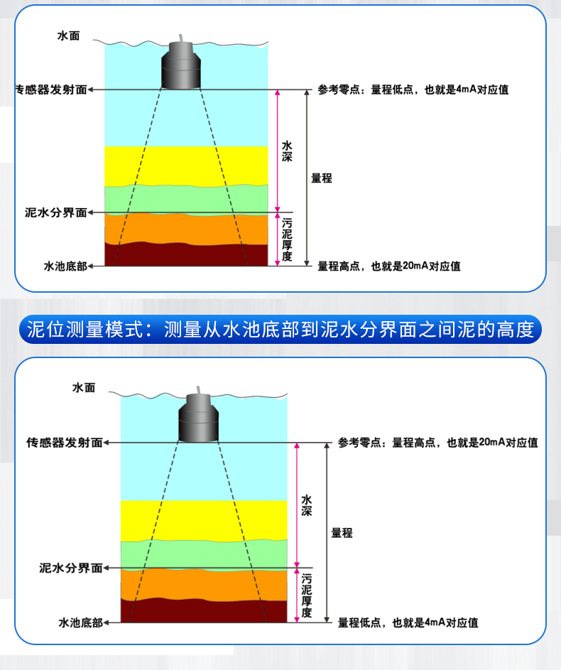 產(chǎn)品描述:超聲波淤泥界面儀,又叫做超聲波泥位計(jì),是一種非接觸式、易安裝維護(hù)的固定容器淤泥厚度測(cè)量?jī)x器。它通過(guò)液體傳播來(lái)實(shí)現(xiàn)對(duì)水下泥位的檢測(cè),是我們公司經(jīng)過(guò)多年努力開發(fā),擁有自主產(chǎn)權(quán)的新一代超聲波淤泥界面儀。