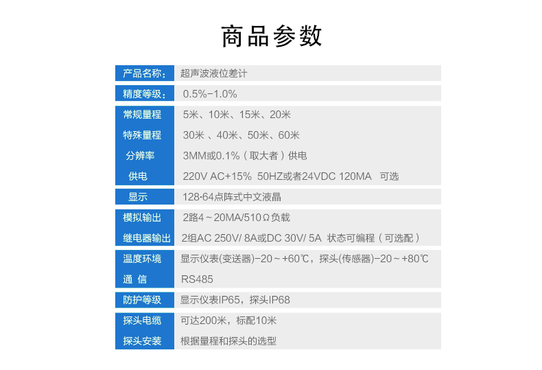 產(chǎn)品描述:超聲波物位差計(jì)(料位,液位),是用來(lái)測(cè)量?jī)蓚€(gè)不同容器的液位 或者料位之間的高低差別。